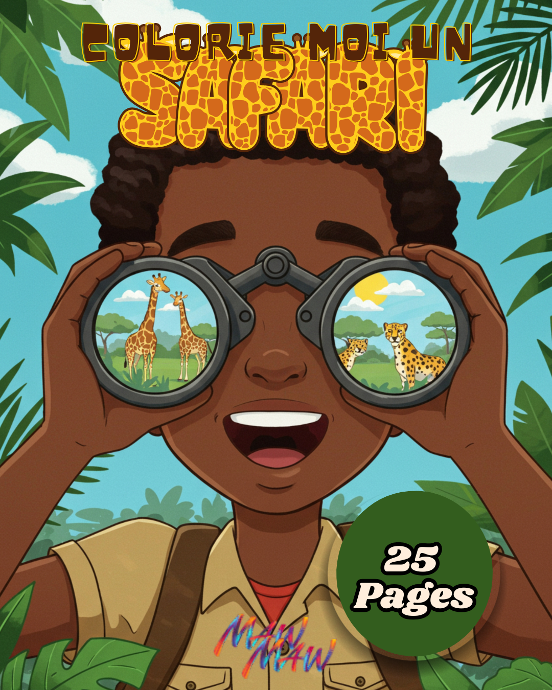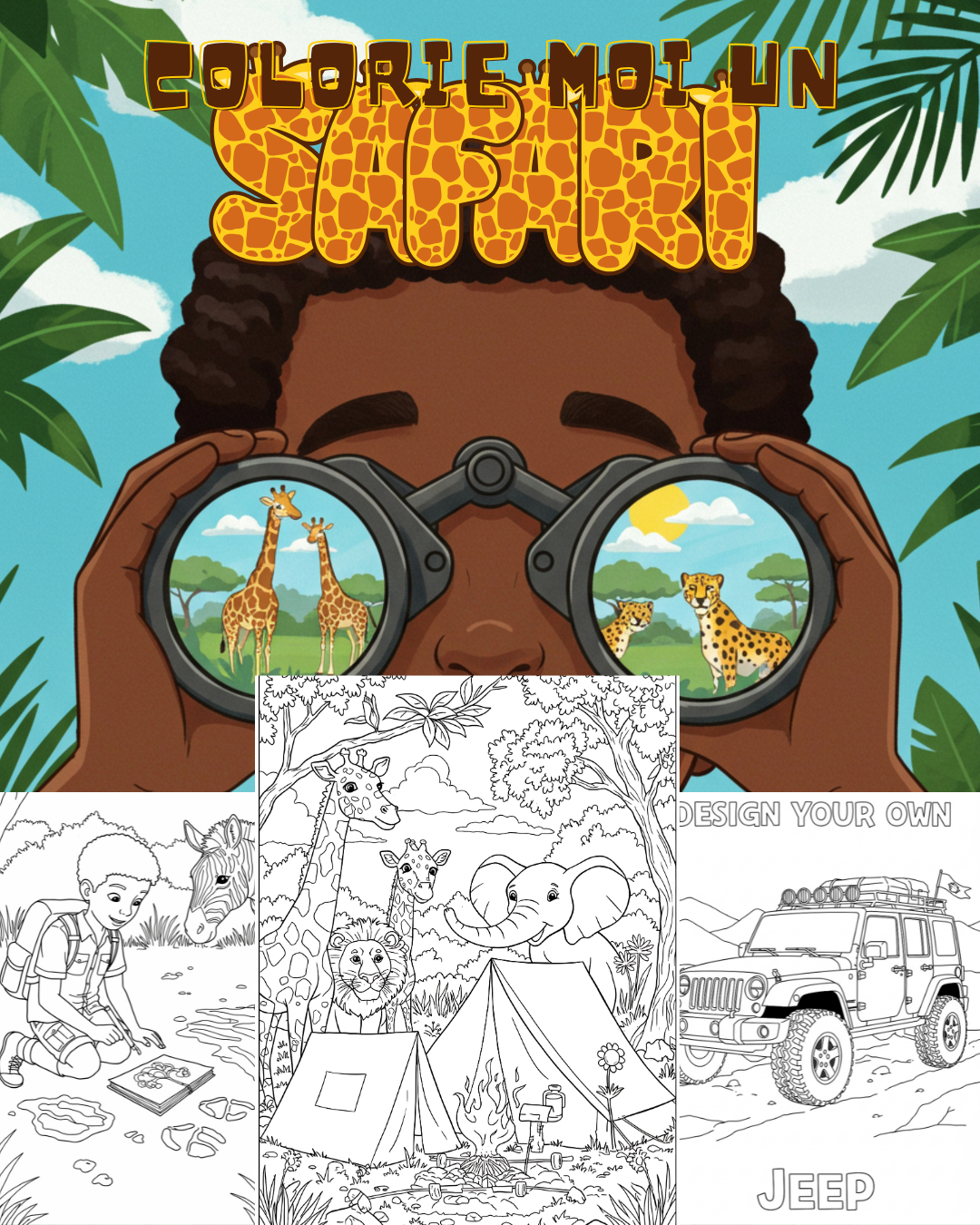 Colorie-moi un Safari invite chaque enfant à partir à la découverte de la savane africaine. Lions, éléphants, zèbres, girafes… tout un univers chaleureux où de jeunes explorateurs vivent des aventures incroyables.