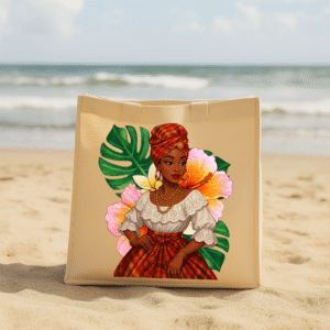 Ce tote bag n’est pas juste un sac — c’est une célébration de la femme noire, de la culture créole et de la beauté afro.